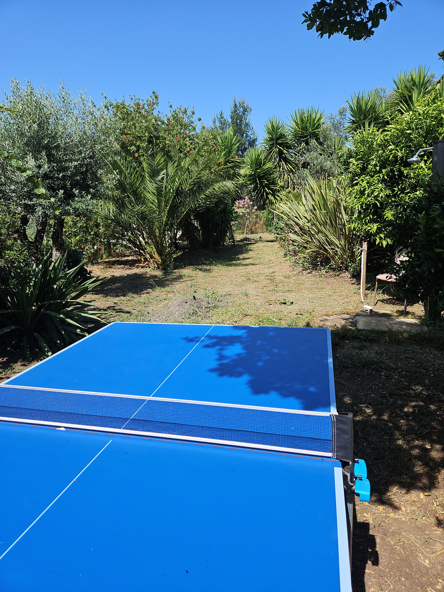 Symbiose mit dem Haus. Im Garten befindet sich eine Tischtennisplatte, eine