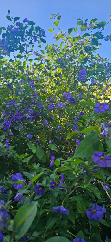 Nachdem wir das völlig verwilderte Grundstück kauften, mussten wir uns die ersten Jahre erst einmal das Grundstück von dem vielen Dornengestrüpp zurück holen.