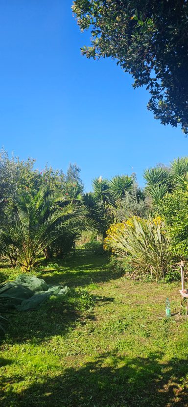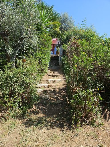 Das Grundstück besteht aus alten Kulturterrassen mit Oliven, Wein, Obst und