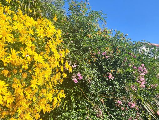 vielen üppig blühenden mediterranen Gewächsen, und bildet eine gelungene