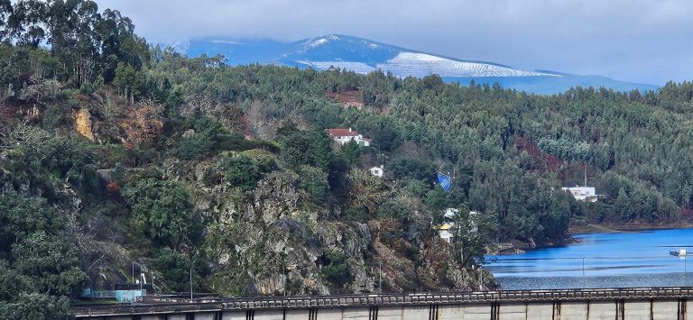 Die Radtouren rund um das Ferienhaus in Portugal bieten eine einzigartige Möglichkeit, die Landschaft in den Bergen zu erkunden. Es gab heute einen ganz besonderen Moment: Schnee hinter den Bergen unseres Badesees! Eine Seltenheit.