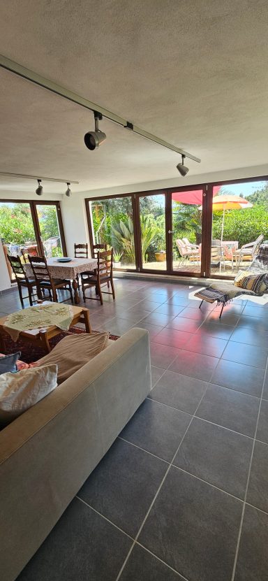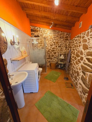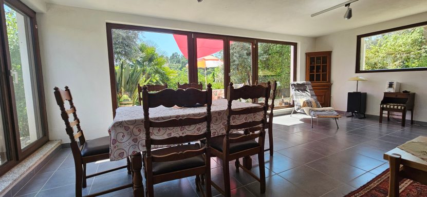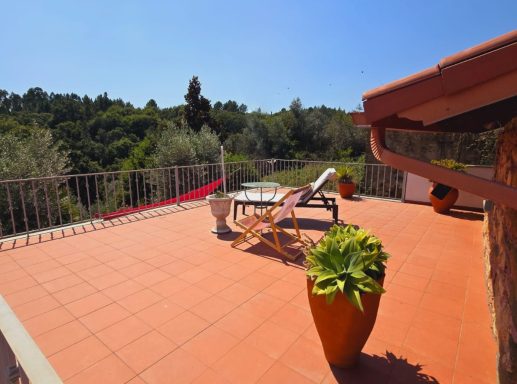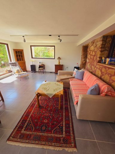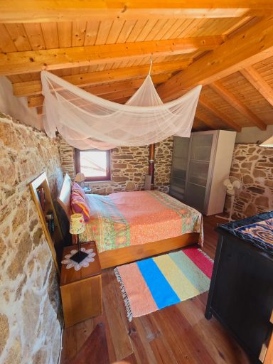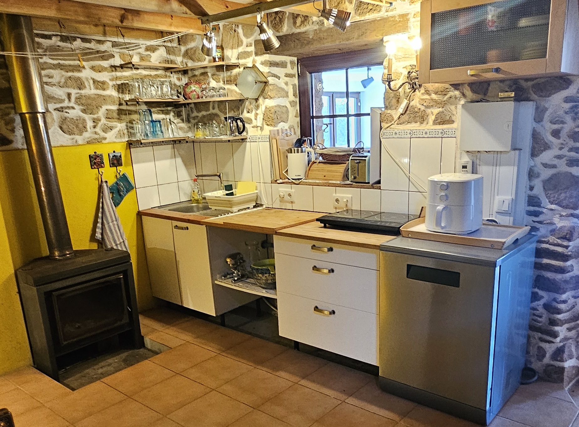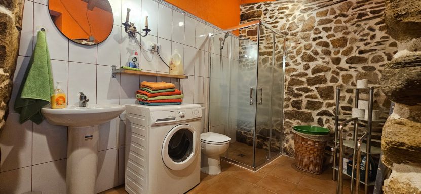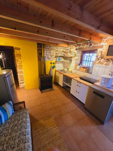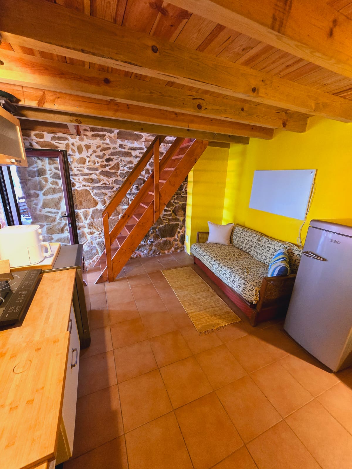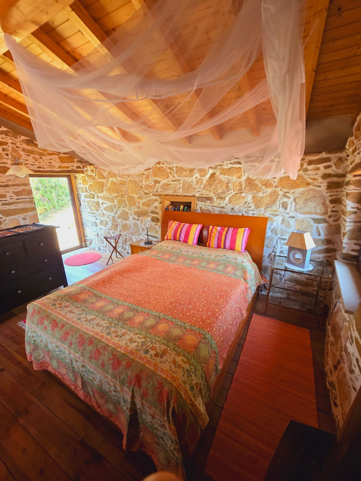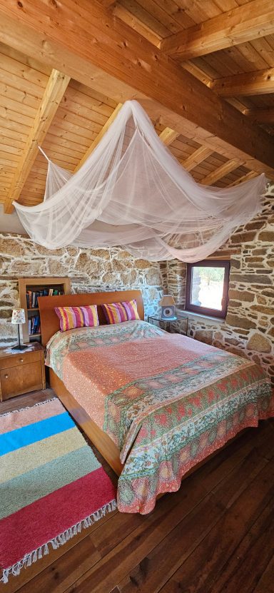 Das Haus mit umliegendem Grundstück war eine ehemalige Landwirtschaft, und wurde in einer aufwändigen, liebevollen Renovierung zum Wohnhaus ausgebaut, so dass es modernen Ansprüchen genügt. Es besteht aus dem alten traditionellen Teil mit Natursteinwänden, in dem sich jetzt unten im Erdgeschoss die Küche und das Bad befinden. Im Obergeschoss unter dem Dach das Schlafzimmer mit Natursteinwänden und Holzdzimmerecke. Das schafft auch im Sommer ein angenehmes Raumklima.
