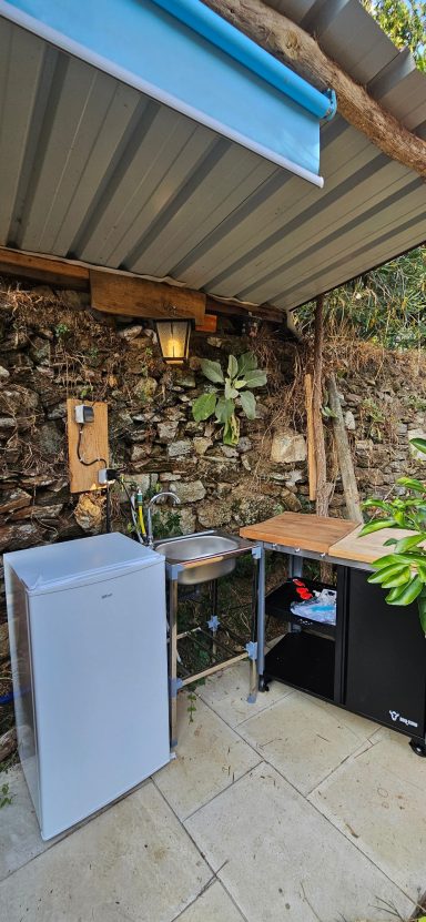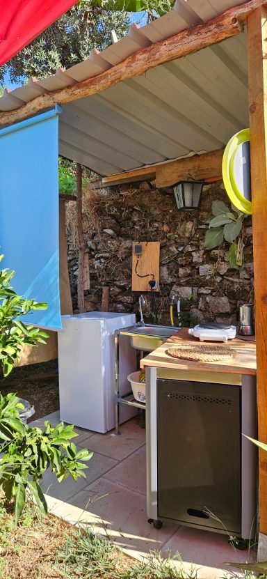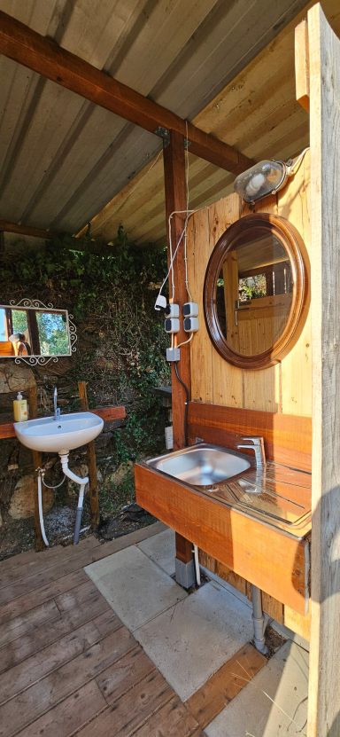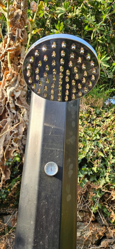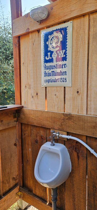 Solardusche, Spüle, Handwaschbecken, Pissoir, Toilette